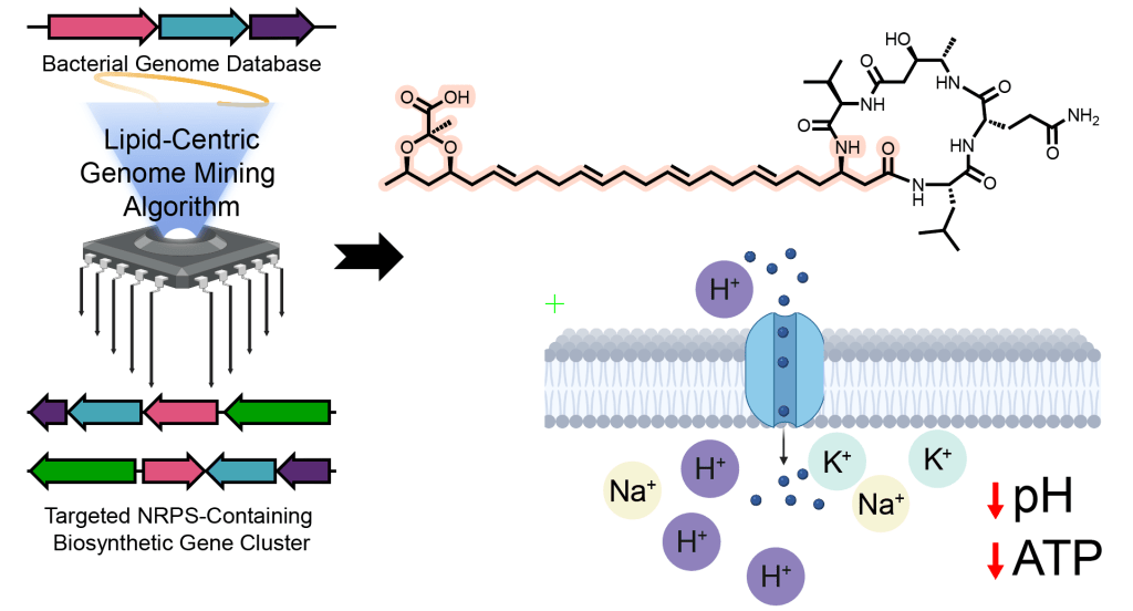 Lipid-donor-anchored genome mining uncovers dioxanopeptins, antibacterial lipopeptides with a 1,3-dioxane functionalized polyunsaturated lipid tail.