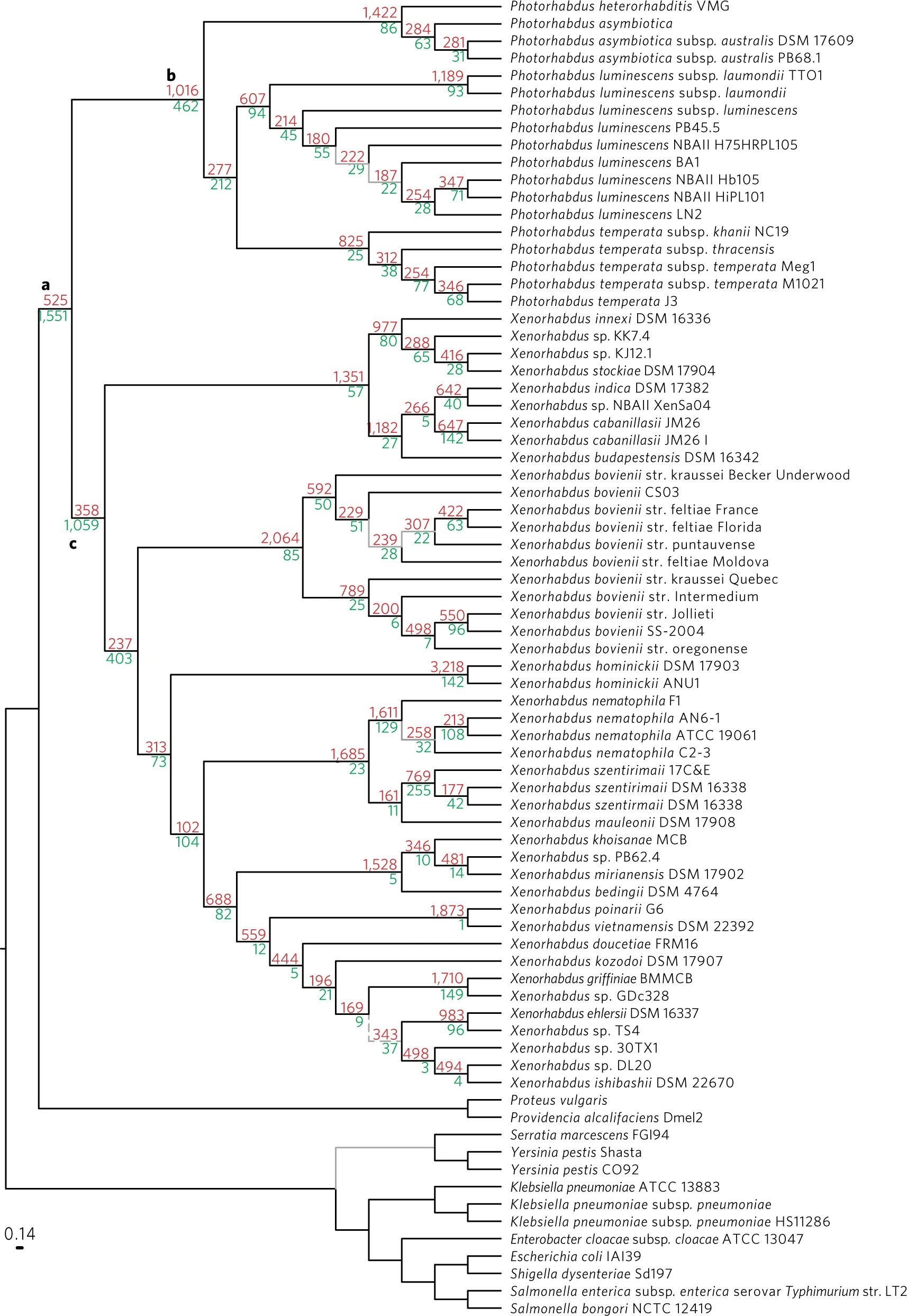 Natural product diversity associated with the nematode symbionts Photorhabdus and Xenorhabdus.