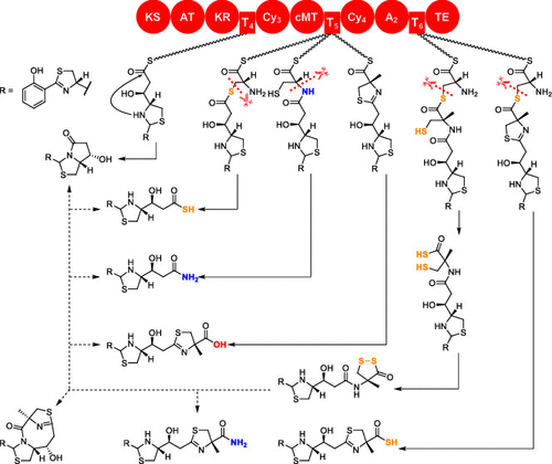 Cleavage off-loading and post-assembly-line conversions yield products with unusual termini during biosynthesis.